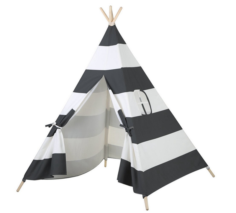 TT40-black stripe-Foldable Cotton Canvas Indian Teepee Kid Play Tent for Children Playhouse